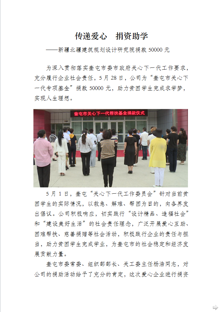 傳遞愛心 捐資助學(xué) ——新疆北疆建筑規(guī)劃設(shè)計研究院捐款50000元